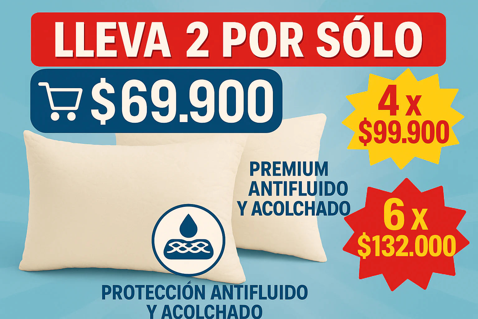 Doble capa de poliéster + guata siliconada que evita filtraciones, manchas y derrames.