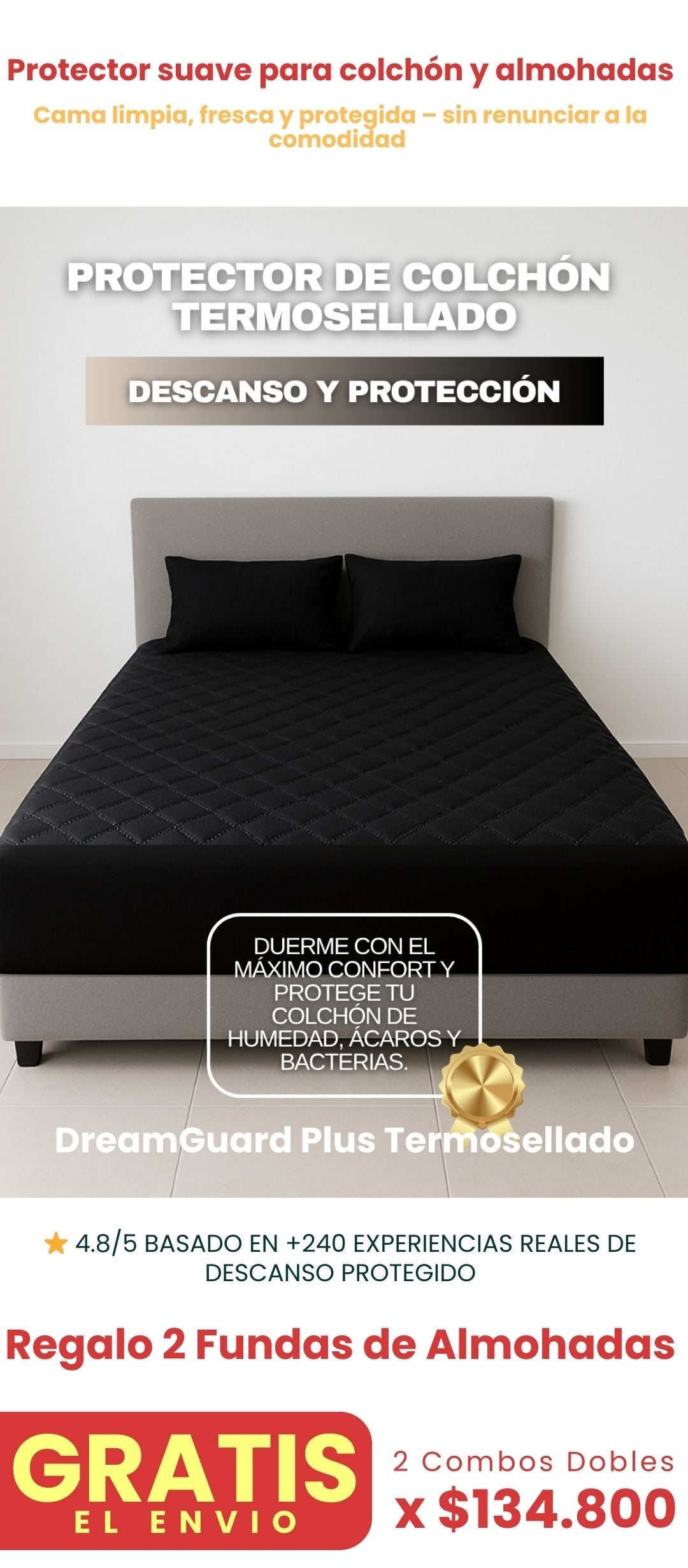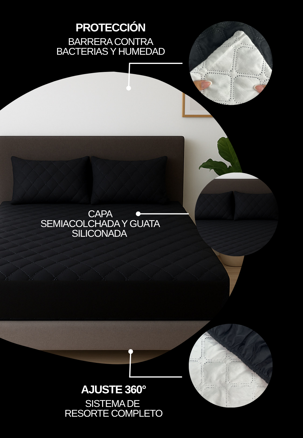 Nuestros protectores combinan tejido de microfibra de poliéster de alta densidad con guata siliconada de 100 g, ofreciendo suavidad, ligereza y excelente capacidad termorreguladora.