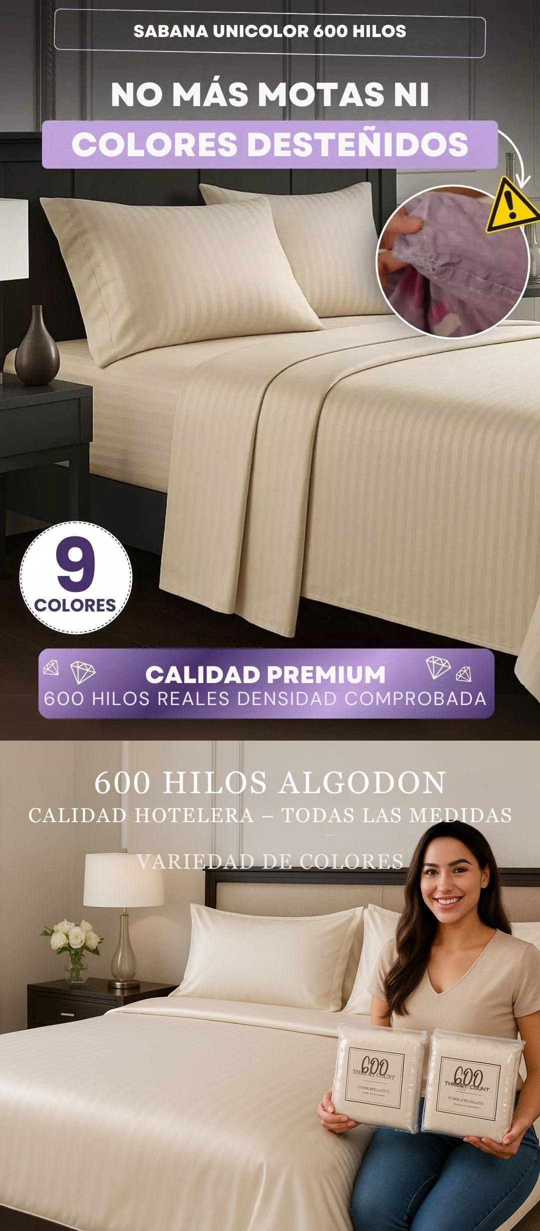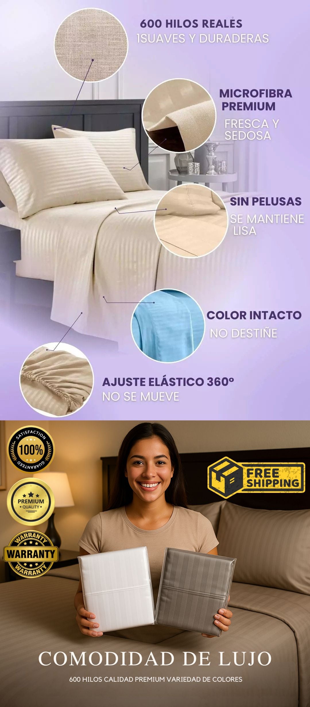 🛏️ Suavidad Premium – Tela de 600 hilos que brinda una experiencia suave al tacto.